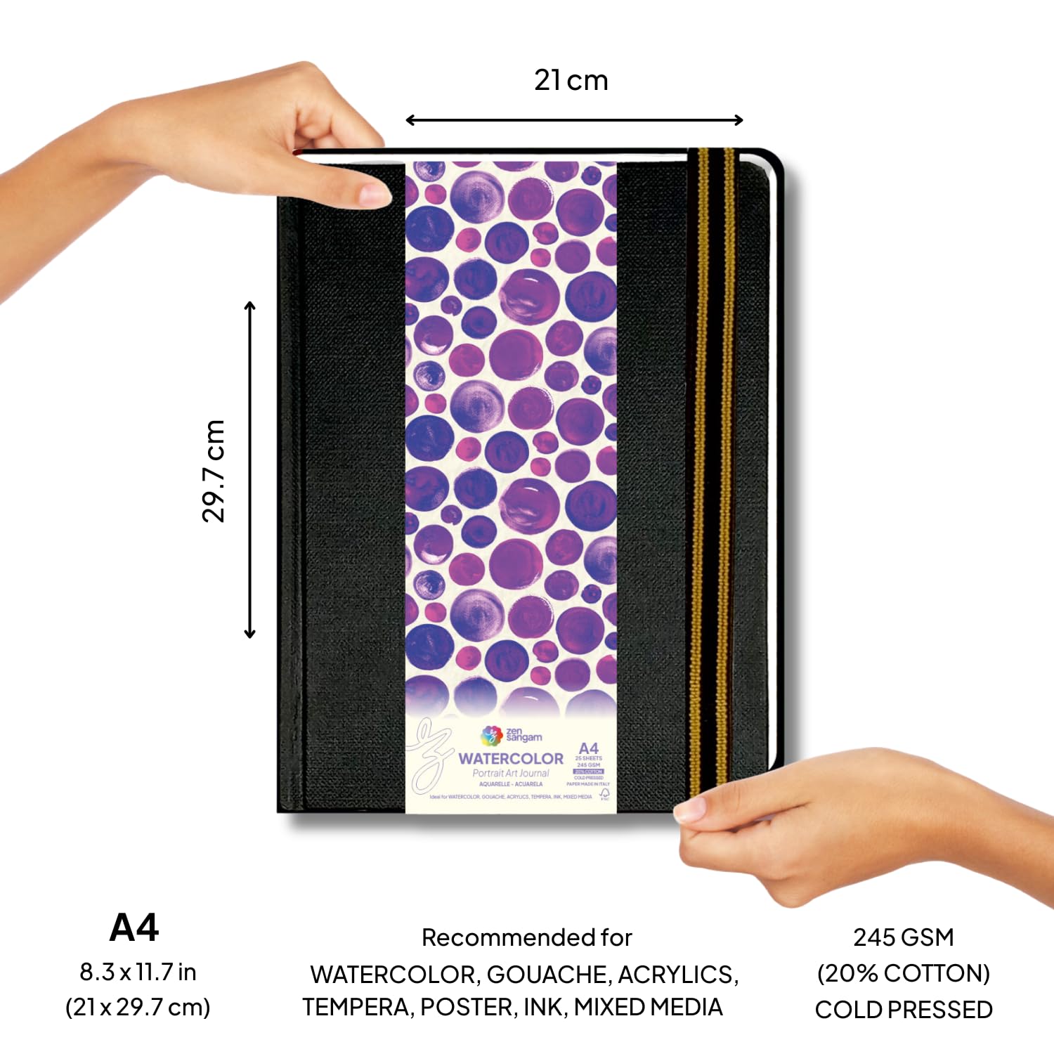 Watercolor Art Journal | 245GSM - 20% Cotton | Portrait Black Cover | Zen Sangam