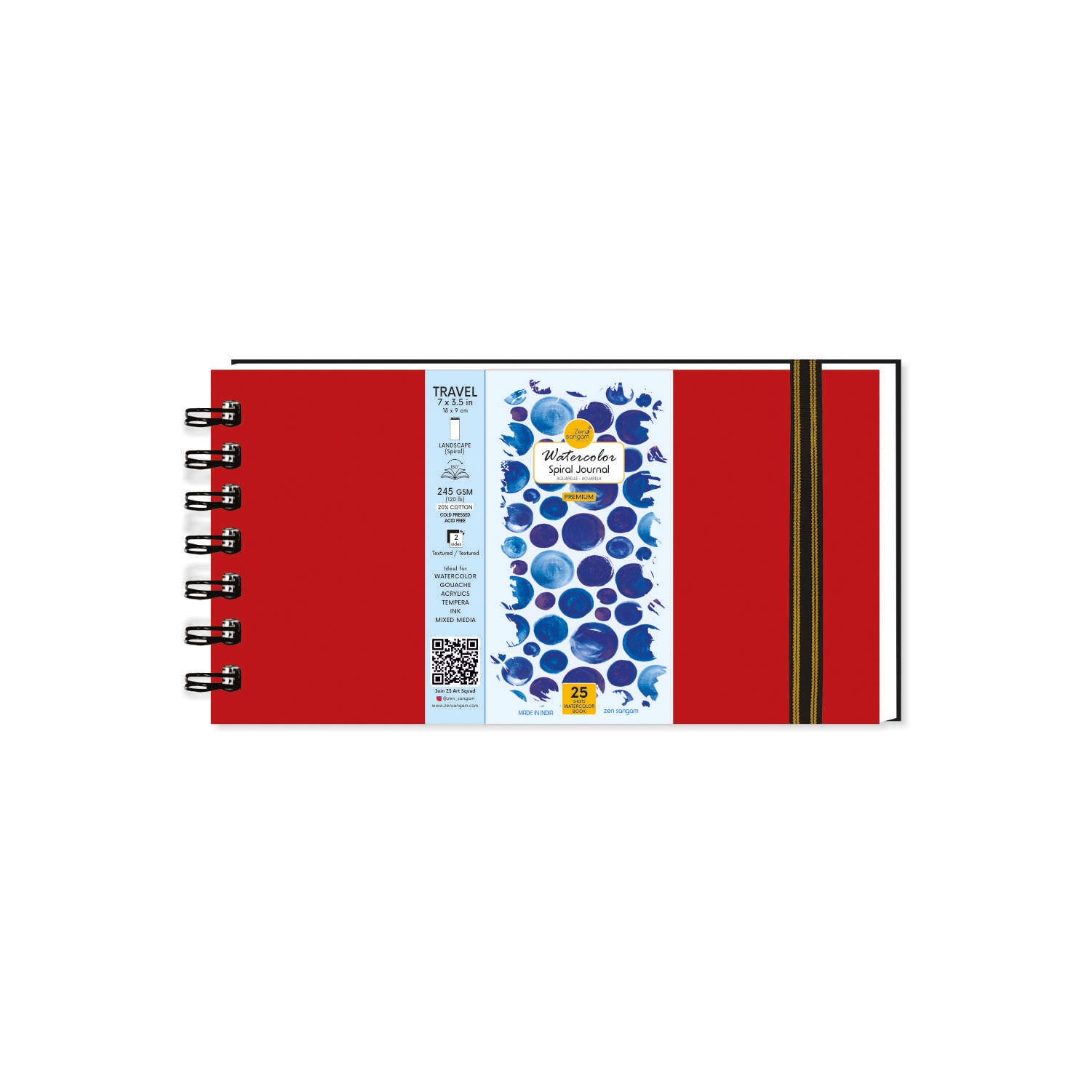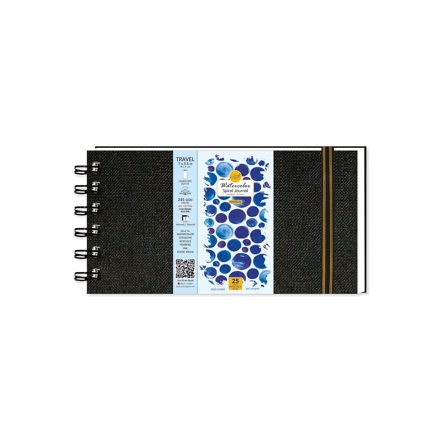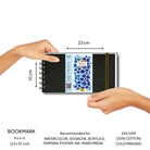 - Special Bookmark Size 245 GSM Spiral Watercolor Journal consisting of 25 Sheets (50 Pages) that are 20% Cotton and Cold Pressed.
