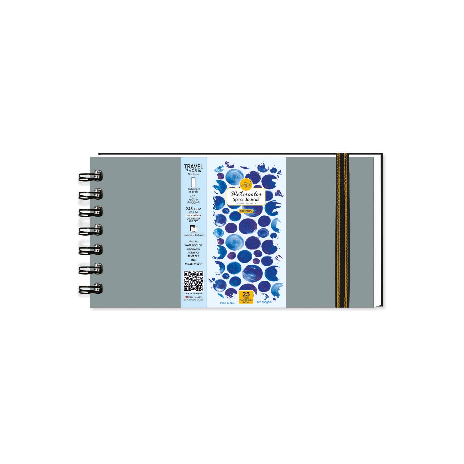 Bookmark Spiral Watercolor Journal | 245 GSM 20% Cotton | Cold Pressed | Zen Sangam
